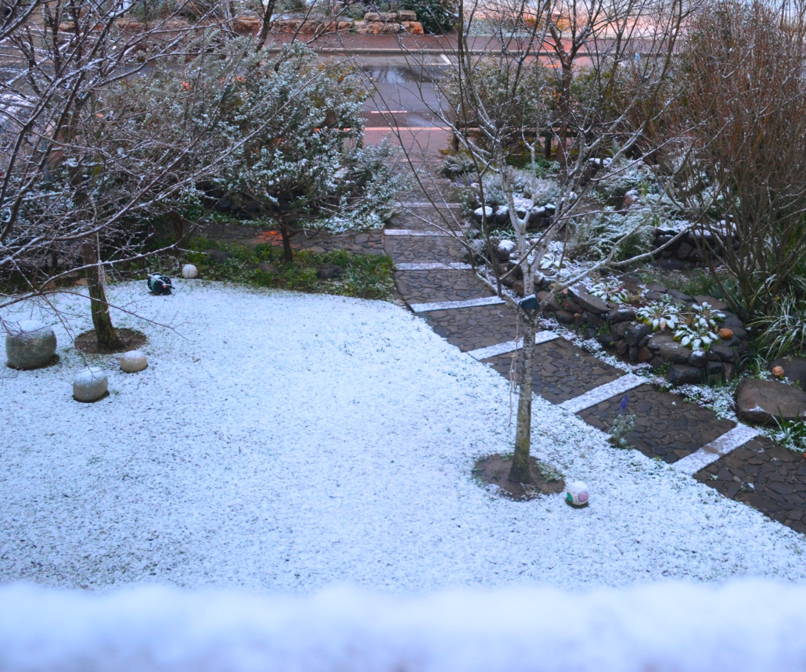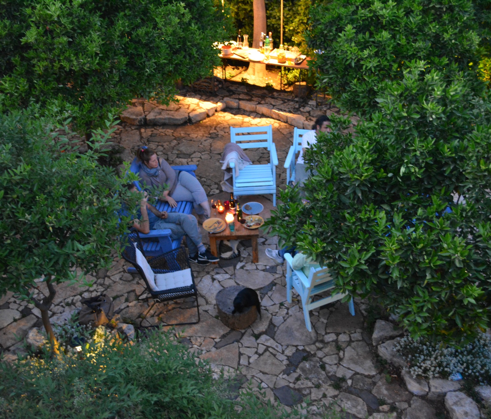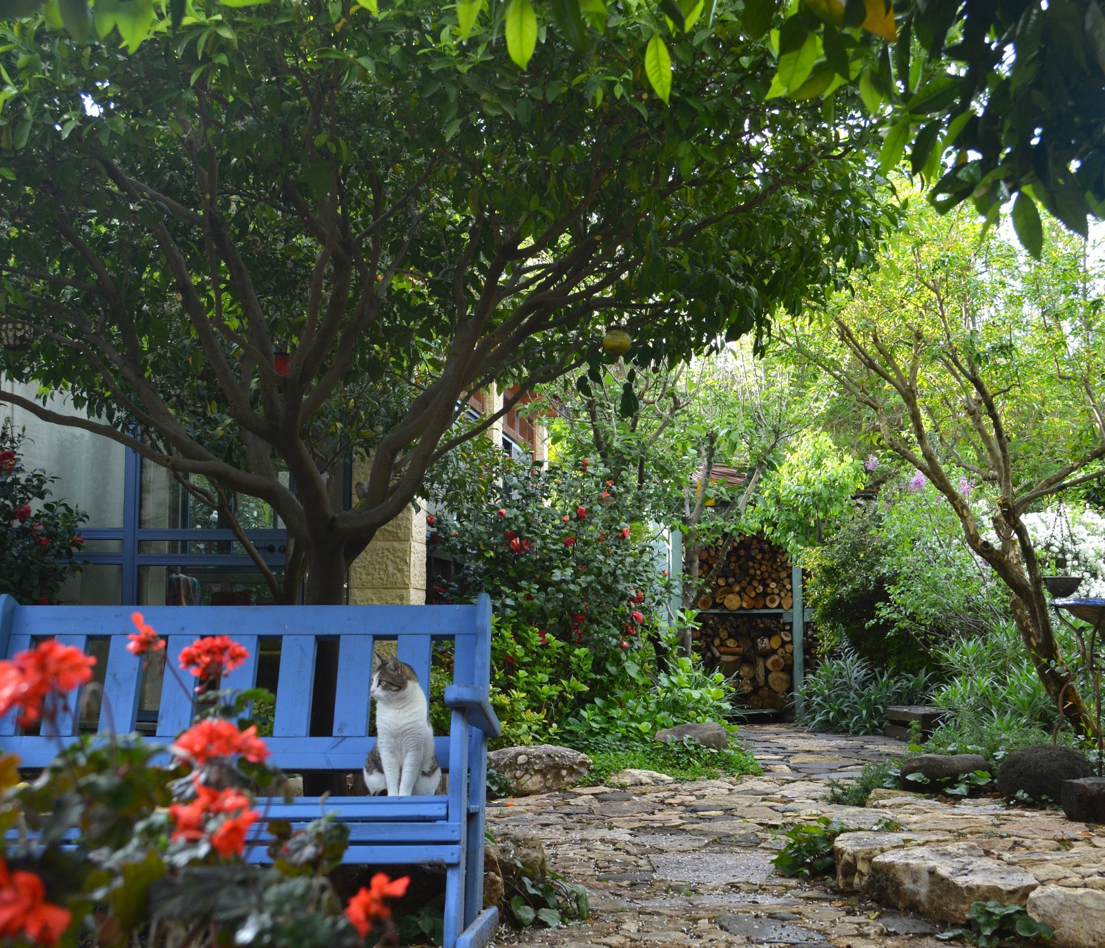 גן גלילי, השופע צמחייה מגוונת, עצי פרי רבים ופינות חמד נעימות. בגן בנויים שבילים מרוצפים באבן מקומית, טרסות מאבני בזלת. באזור הקדמי של הגן ישנה מדשאה המזמינה למשחק ולרביצה נעימה תחת העצים, אזורי ישיבה מוצלים ובריכת נוי עם צמחי מים. בחלקו האחורי ישנו מטבח חוץ ופינת מדורה, הנמצאים על אזור המרוצף באבן, והם יוצרים מקום אידיאלי לאירוח ולארוחות משפחתיות. הגן עוטף את הבית ויוצר אווירה נינוחה ושלווה. בגן מורגשים היטב חלופי העונות, מראות של צבעי סתיו שובים את הלב.