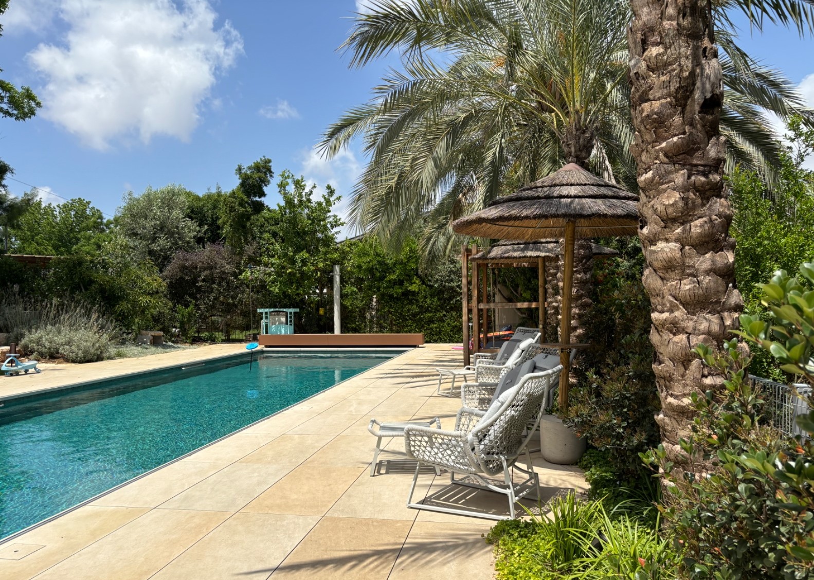 נוספו פינות מגוונות בגן- איזור למדורה משפחתית, האט טאב מפנק, מטבח חוץ, פינות ישיבה מוצלות ונשתלו עצי פרי חדשים.