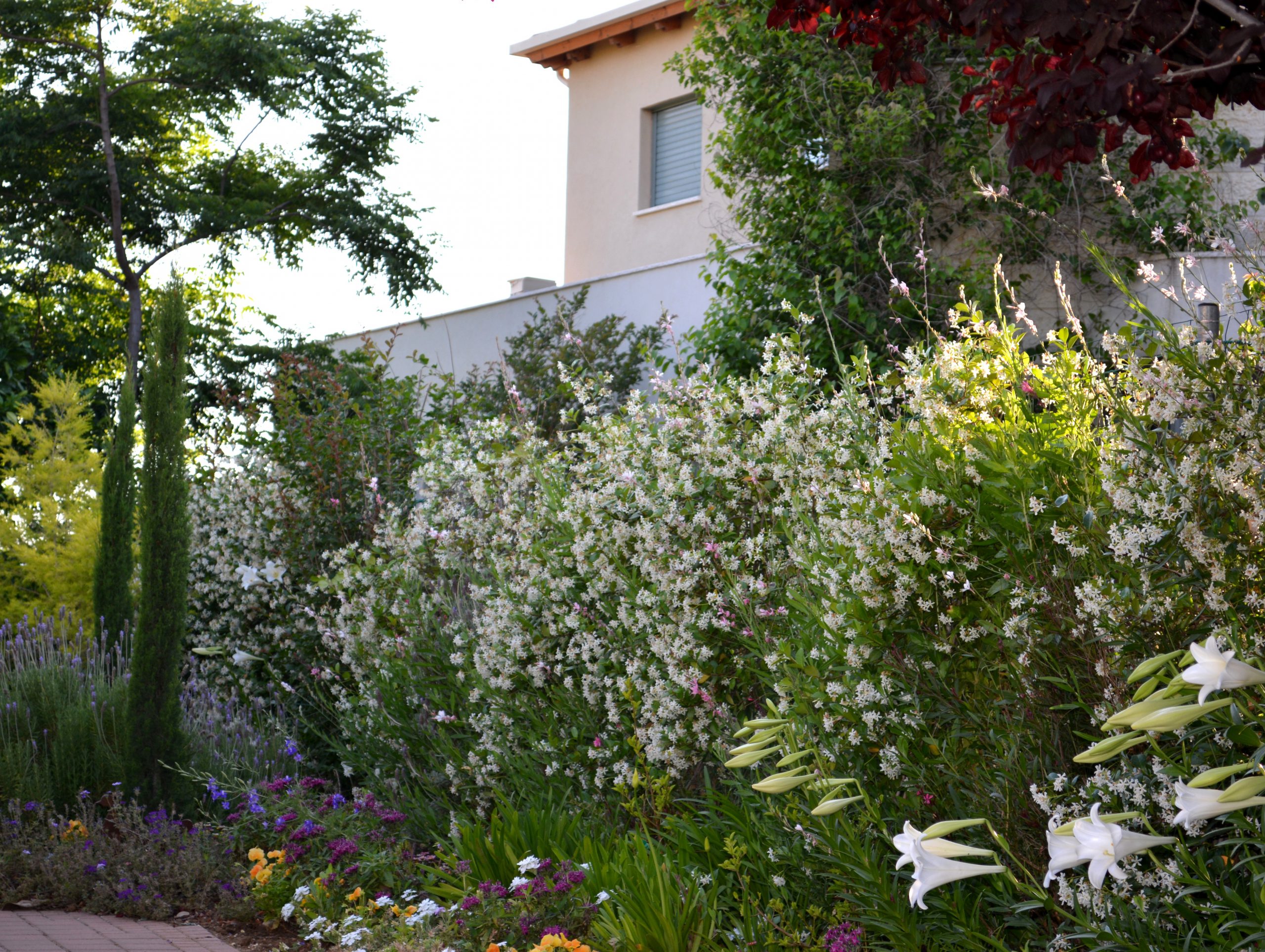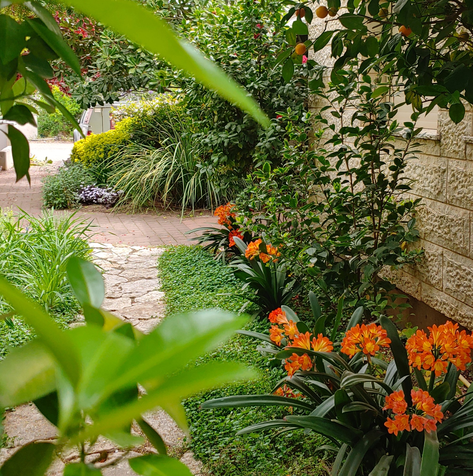 גן פורח ועשיר, העוטף את הבית כולו בירוק.