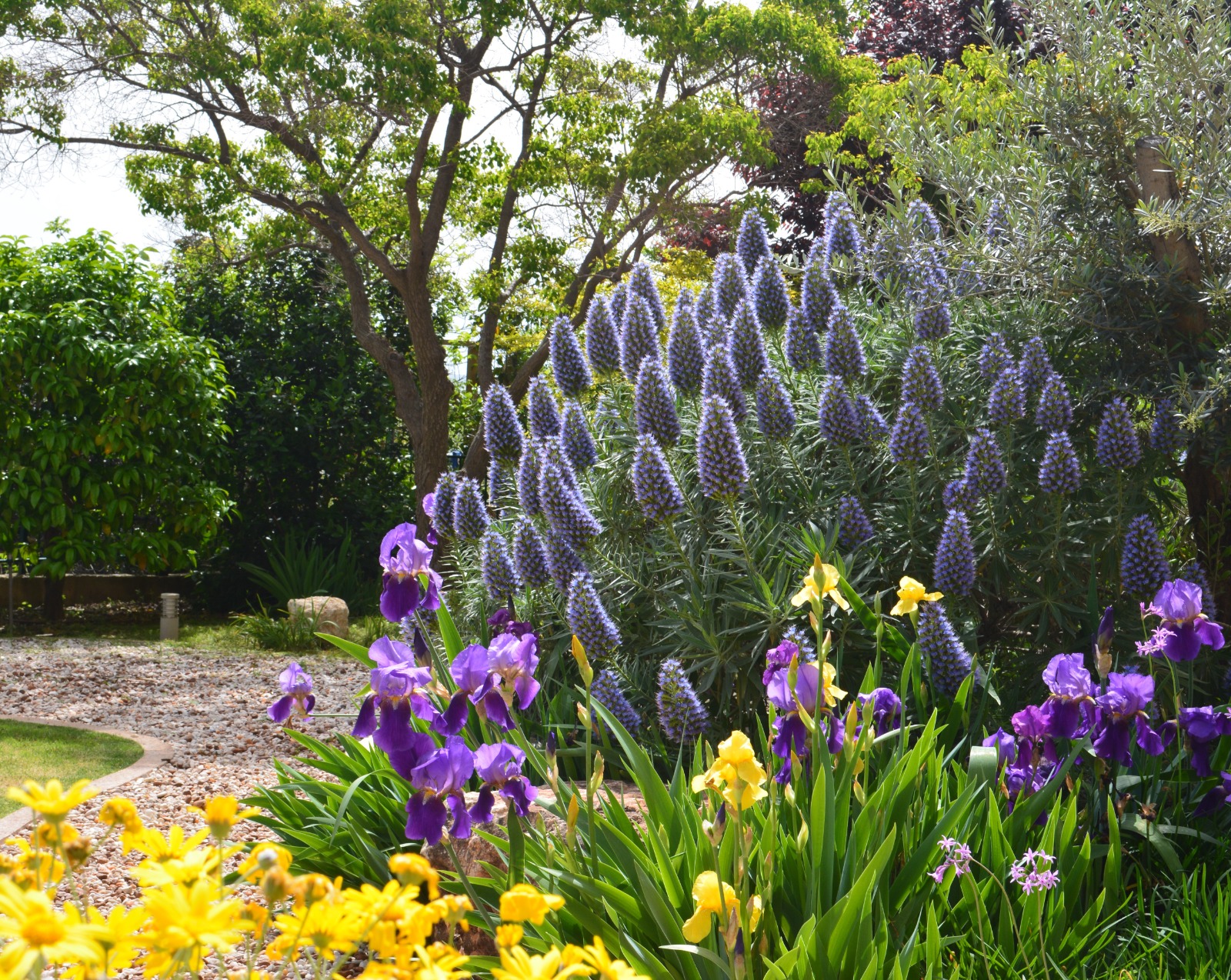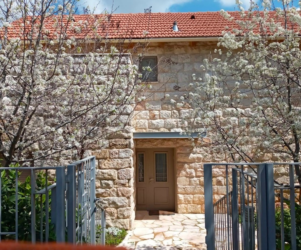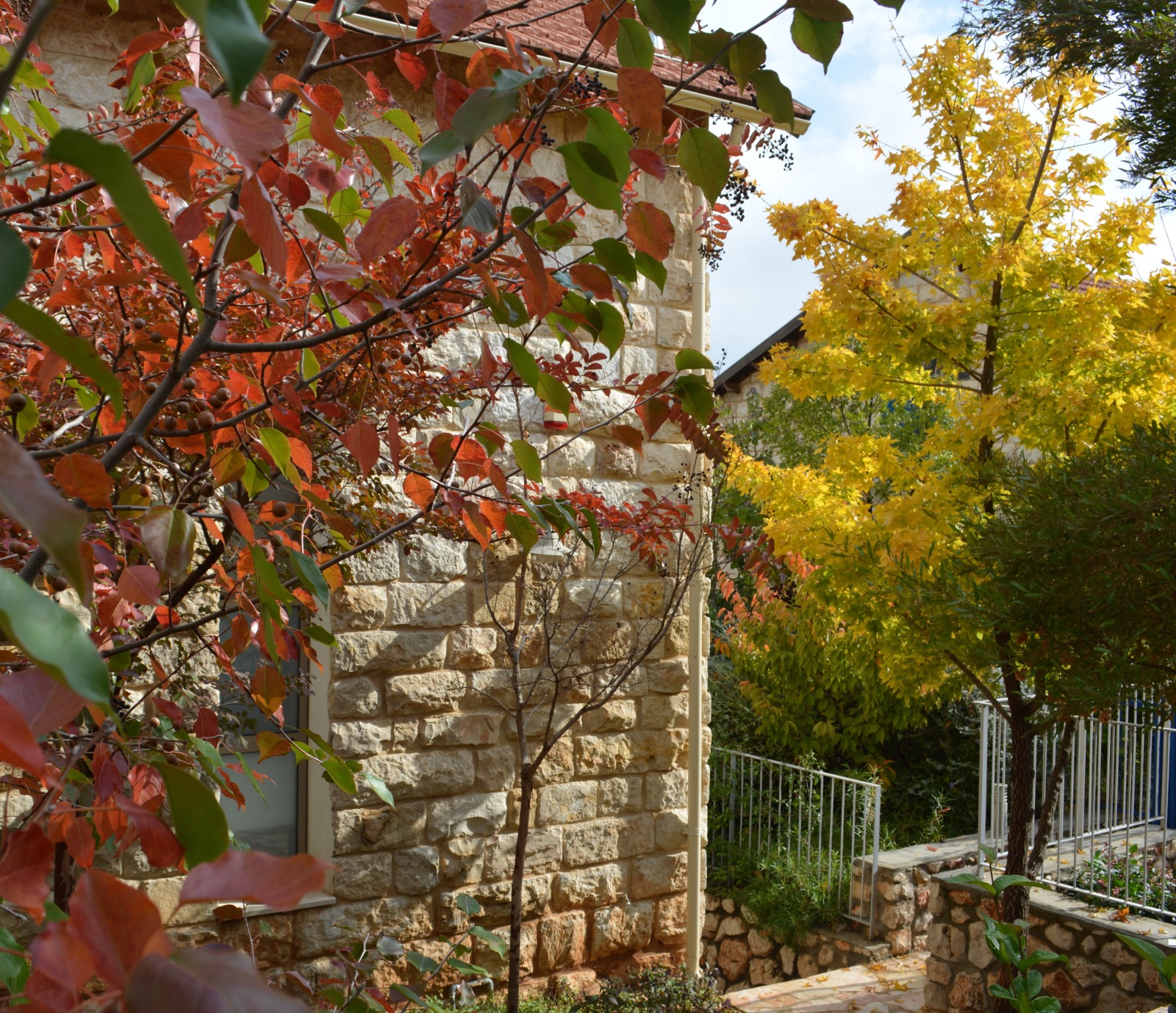 גן בסגנון ים תיכוני, התוכנן בדגש על פשטות ונוחות. הגן מתפרש על שני מפלסים, בחלקו התחתון נמצאים מדשאה, פינות ישיבה נעימות הצופות לעמק החולה ולרמת הגולן, וישנם עצי פרי רבים, גן ירק וצמחייה הצובעת את הגן בצבעים שונים.
